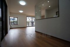 大きな窓のあるリビングは、陽光あふれる明るい空間です。居心地良く、ご家族皆がゆったり寛げる憩いの空間となりそうです。