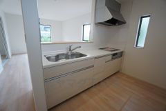 対面式カウンターキッチンでお子様の様子が見守れます。カウンタートップは耐熱性に優れており、日ごろのお掃除もふき取るだけでOK。ステンレスシンクも簡単にお掃除できますよ。