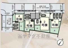 3号棟。駐車2台分確保。 ご夫婦で1台ずつ所有出来ます^^ 前面道路は9〜10mと幅広くお車の離合もスムーズです。