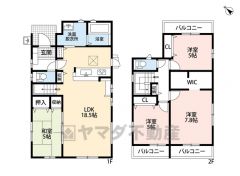 リビングは18帖以上の開放感あふれる空間。2階全室バルコニーにつながります^^主寝室には大容量のウォークインクローゼット付き。