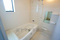 1日の疲れを癒すくつろぎのバスルーム。足を伸ばしてもゆったりと入れるサイズです。お子様と一緒にお風呂に入っても狭くないですね^^