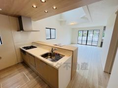 対面式カウンターキッチンでお子様の様子が見守れます。カウンタートップは耐熱性に優れており、日ごろのお掃除もふき取るだけでOK。