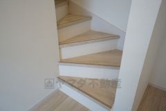 ご年配の方でも安心できる、手すり付き階段です^^段差も低めで設定されてますので安全性にも優れてますね^^