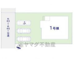 並列駐車3台分を確保^^ ご夫婦で一台ずつと急な来客にも困りませんね^^ 前面道路は4.5〜4.6m。