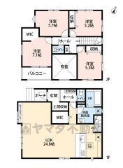 収納力豊富なウォークインクローゼット付き。洋服や小物などを1箇所にまとめて美しい収納を実現します。