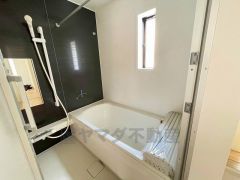 1日の疲れを癒すくつろぎのバスルーム。足を伸ばしてもゆったりと入れるサイズです。お子様と一緒にお風呂に入っても狭くないですね^^