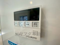 キッチン横からお湯張り、追い炊き、足し湯がボタン一つで楽々操作できる給湯機リモコンです^^忙しい夕飯の準備の時間帯に重宝しますね。