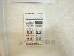 雨の日の洗濯も安心できる浴室暖房乾燥機付き浴室。リモコンで操作もボタン1つで簡単。