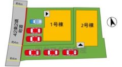 1号棟。カースペース3台^^ ご夫婦で1台ずつとご友人や急な来客があっても困りません^^ 前面道路西側4m。