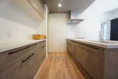 対面式カウンターキッチンでお子様の様子が見守れます。カウンタートップは耐熱性に優れており、日ごろのお掃除もふき取るだけでOK。ステンレスシンクも簡単にお掃除できますよ。