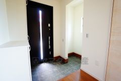 同仕様写真。採光も考えられた明るい玄関です。自動で閉まるタッチキーとTVインターホンが装備されているので、セキュリティーも安心。