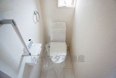 同仕様写真。温水洗浄機付トイレです。節水機能もあるので、安心して使えますね。もちろん、1階2階の2ヶ所にトイレがあるので、忙しい朝にもゆとりができますね。