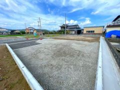 1号棟。カースペースはゆとりある4台分を確保^^ 前面道路私道南側約4.03m、西側約5.29m。