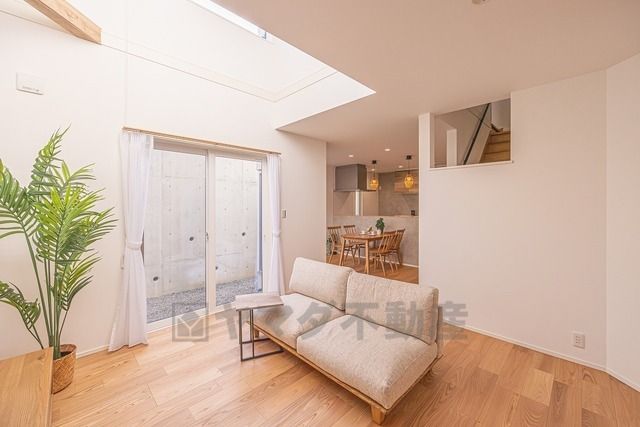 大きな窓のあるリビングは、陽光あふれる明るい空間です。居心地良く、ご家族皆がゆったりくつろげる憩いの空間となりそうです。