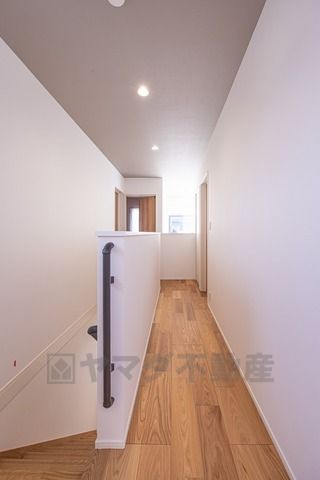 2階廊下。リビング上部の吹抜けから明るい光が差し込みます^^