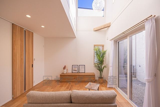 正面の窓から空が見える設計となっており開放的ですね^^