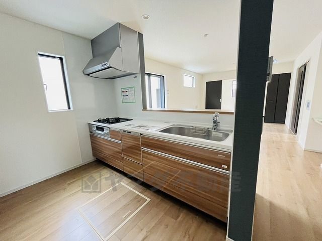対面式カウンターキッチンでお子様の様子が見守れます。カウンタートップは耐熱性に優れており、日ごろのお掃除もふき取るだけでOK。ステンレスシンクも簡単にお掃除できますよ。