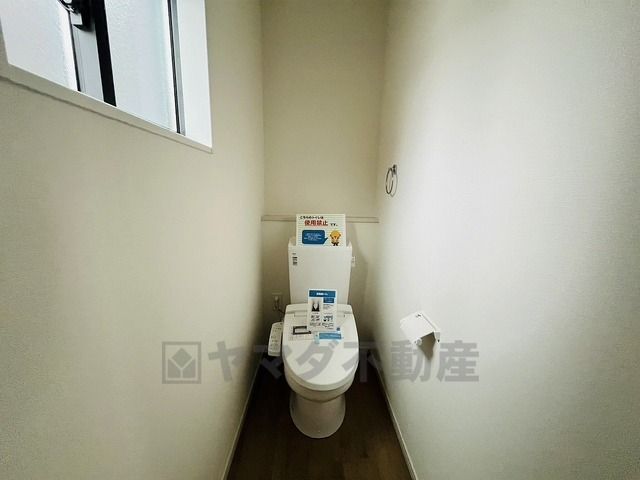温水洗浄機付トイレです。節水機能もあるので、安心して使えますね。もちろん、1階2階の2ヶ所にトイレがあるので、忙しい朝にもゆとりができますね。