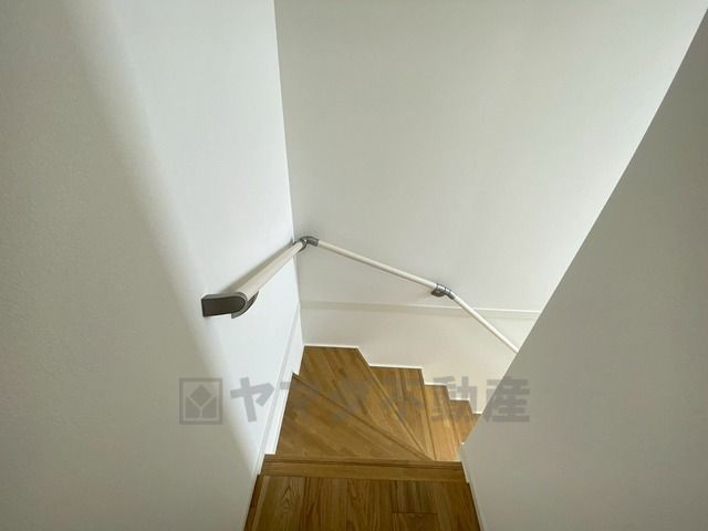 ご年配の方でも安心できる、手すり付き階段です^^段差も低めで設定されてますので安全性にも優れてますね^^