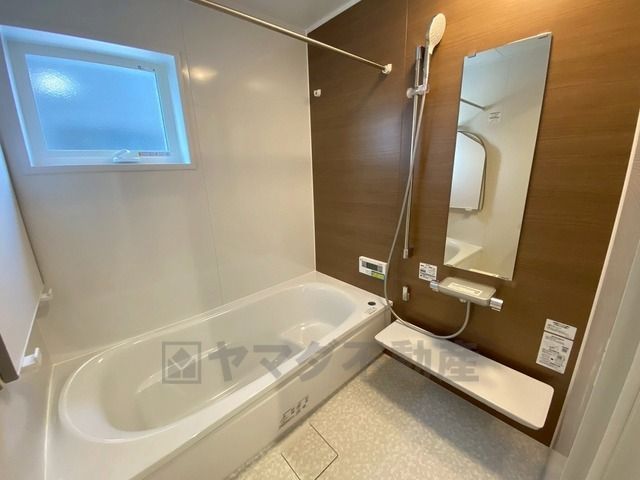 1日の疲れを癒すくつろぎのバスルーム。足を伸ばしてもゆったりと入れるサイズです。お子様と一緒にお風呂に入っても狭くないですね^^
