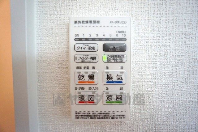 雨の日の洗濯も安心できる浴室暖房乾燥機付き浴室。リモコンで操作もボタン1つで簡単。 浴室暖房乾燥機には、暖房、乾燥、涼風、換気の4つの機能が付いています。タイマー付きです。