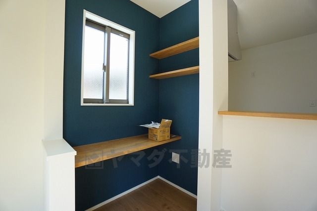 リビングに設置された「スタディーカウンター」は、お子様の勉強スペースに便利です。