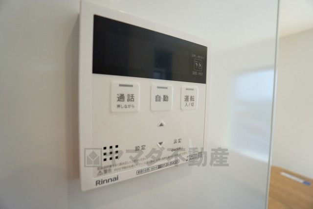 給湯器リモコンはキッチン横からボタンひとつで操作が楽々。通話ボタン付きでお子様とも会話ができて安心です。