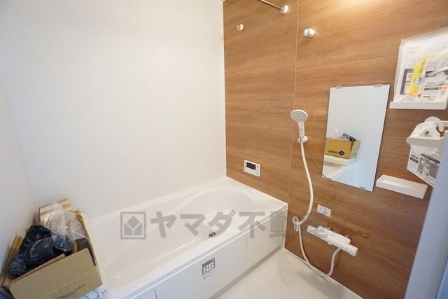 1日の疲れを癒すくつろぎのバスルーム。足を伸ばしてもゆったりと入れるサイズです。お子様と一緒にお風呂に入っても狭くないですね^^