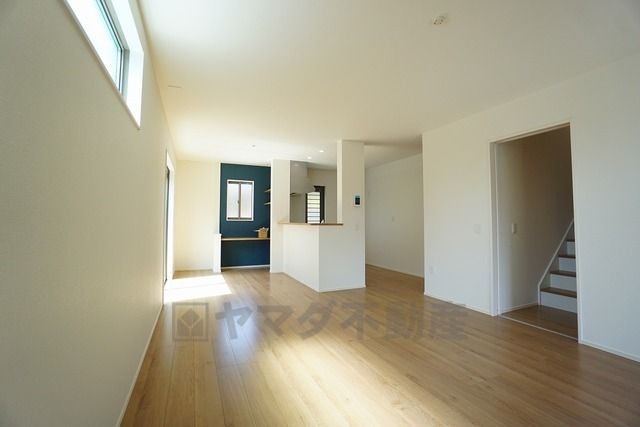 家族が集まる開放的なリビング。約18帖の大空間で毎日のお食事が楽しみです^^思い思いの時間を過ごしたり、家族みんなで食事をしたり、素敵な団らんの場になりますね。
