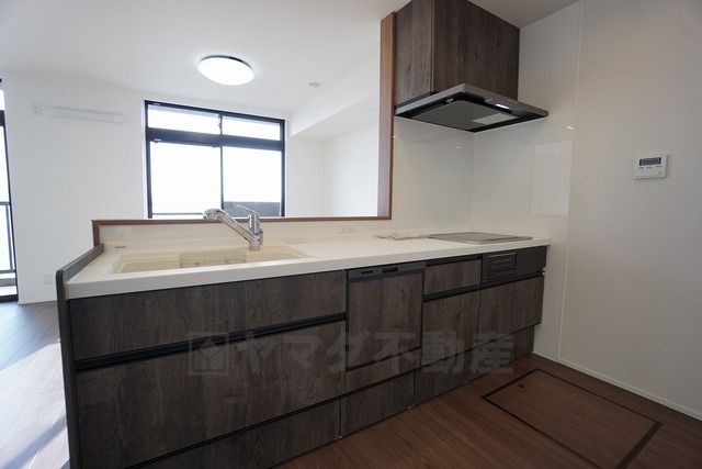 対面式カウンターキッチンでお子様の様子が見守れます。カウンタートップは耐熱性に優れており、日ごろのお掃除もふき取るだけでOK。