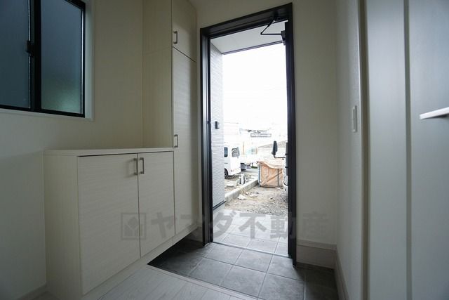 採光も考えられた明るい玄関です。自動で閉まるタッチキーとTVインターホンが装備されているので、セキュリティーも安心。