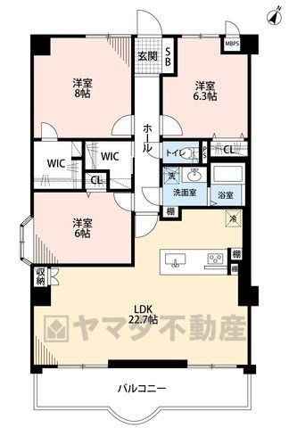 LDK22.7畳、洋8畳、洋6.3畳、洋6畳 |