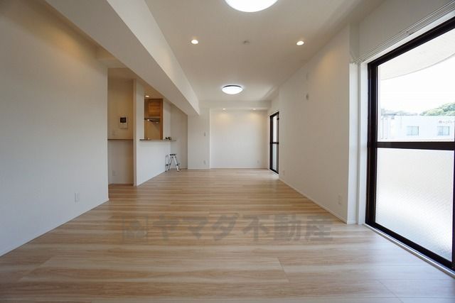 大きな窓のあるリビングは、陽光あふれる明るい空間です。居心地良く、ご家族皆がゆったり寛げる憩いの空間となりそうです。
