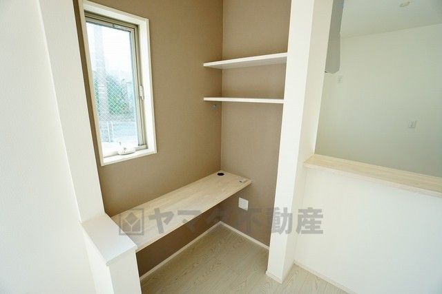 同仕様写真。対面キッチン横にあるスタディーコーナー。キッチンからお子様のお勉強にも目が届きます。勉強やその他の作業もはかどりそうですね。