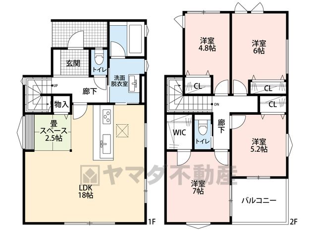 | 間取り詳細 | LDK18畳(1F)、洋7畳(2F)、洋6畳(2F)、洋5.2畳(2F)、洋4.8畳(2F) | 都市計画 | 市街化区域 |