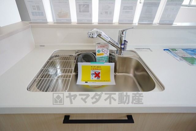 広々とした凸型シンクに洗剤ポケットを標準装備。大きなお鍋など洗いやすいです。洗剤や石鹸、スポンジもすっきりできる収納付き。