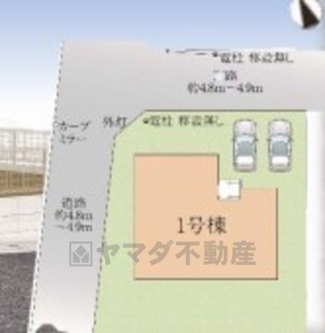 角地^^ 前面道路は北・西側4.8m~4.9m。 交通量が少ないため小さなお子様がいても安心です^^