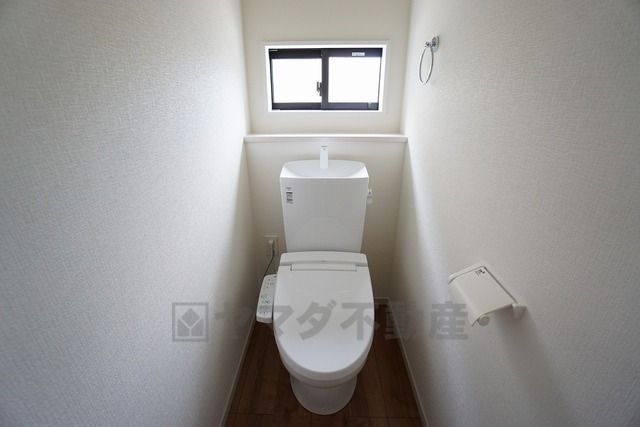 ウォシュレット付トイレです。節水機能もあるので、安心して使えますね。もちろん、1階2階の2ヶ所にトイレがあるので、忙しい朝にもゆとりができますね。