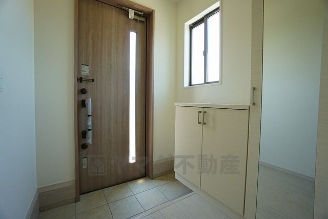 採光も考えられた明るい玄関です。自動で閉まるタッチキーとTVインターホンが装備されているので、セキュリティーも安心。