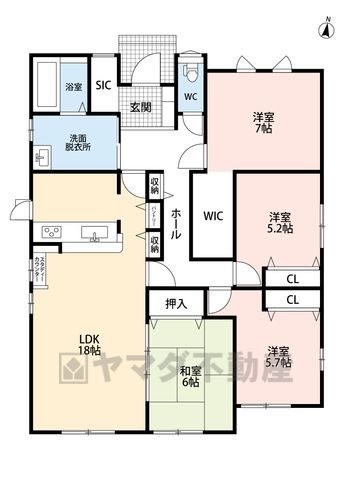 LDK18畳(1F)、和6畳(1F)、洋7畳(1F)、洋5.7畳(1F)、洋5.2畳(1F) |