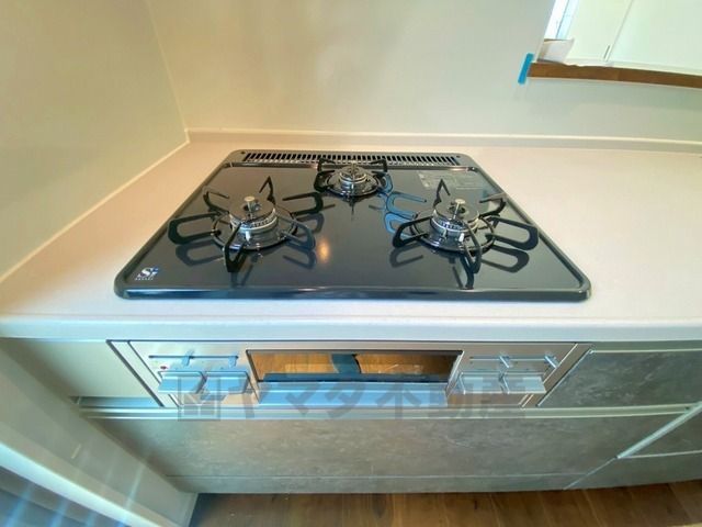 同時にたくさんの料理が調理できる3口コンロ。長時間熱を通しておきたい煮込み料理を作りながら、炒め物など同時進行で進められます。