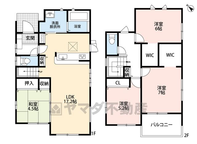 LDK17.2畳(1F)、和4.5畳(1F)、洋5.2畳(2F)、洋6畳(2F)、洋7畳(2F) |
