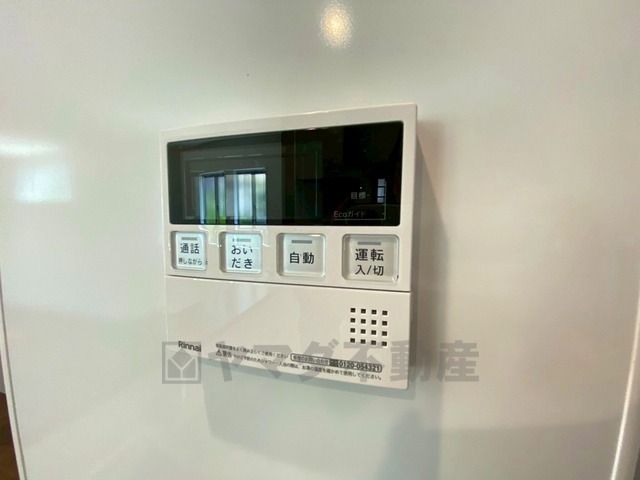 キッチン横からお湯張り、追い炊き、足し湯がボタン一つで楽々操作できる給湯機リモコンです。忙しい夕飯準備の時間帯に重宝しますね。