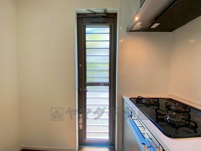 勝手口付きキッチン。においがこもりやすいキッチンの換気にも役立ちます。ごみの仮置きにもなり、便利です^^