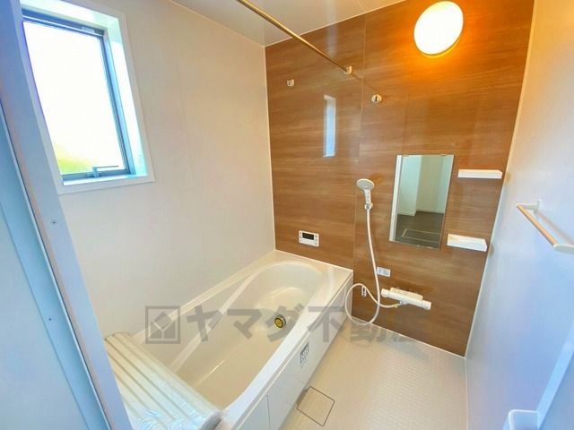 1日の疲れを癒すくつろぎのバスルーム。足を伸ばしてもゆったりと入れるサイズです。お子様と一緒にお風呂に入っても狭くないですね^^