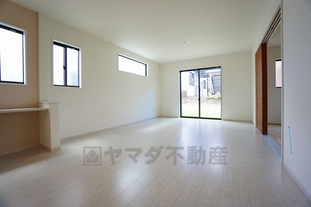 大きな窓のあるリビングは、陽光あふれる明るい空間です。居心地良く、ご家族皆がゆったり寛げる憩いの空間となりそうです。