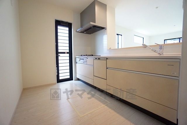 勝手口付きキッチン。においがこもりやすいキッチンの換気にも役立ちます。ごみの仮置きにもなり、便利です^^