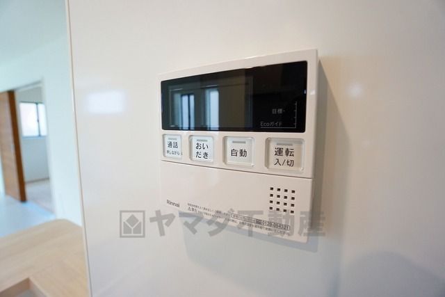 キッチン横からお湯張り、追い炊き、足し湯がボタン一つで楽々操作できる給湯機リモコンです。忙しい夕飯準備の時間帯に重宝しますね。