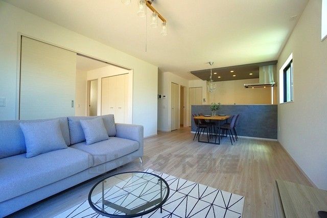 家族が集まる開放的なリビング。約18帖の大空間で毎日のお食事が楽しみです^^思い思いの時間を過ごしたり、家族みんなで食事をしたり、素敵な団らんの場になりますね。