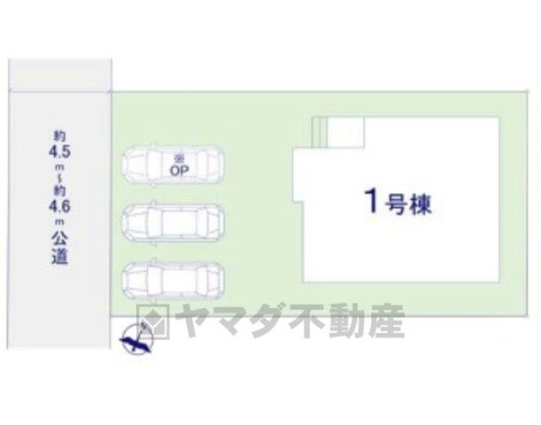 並列駐車3台分を確保^^ ご夫婦で一台ずつと急な来客にも困りませんね^^ 前面道路は4.5~4.6m。